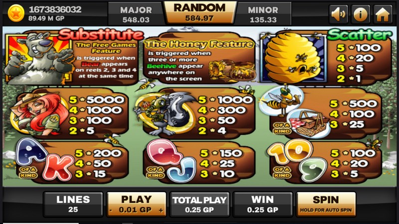 Although the graphics are cartoon style, you will immediately enter the world of mountain woodland. In the background, there will be forests and mountains, and you will find yourself in a charming park. Your symbols, rangers, skunks and bees will fight with the bears. During the battle, you will receive free spins, multipliers and bonus game rewards. The winning combination is part of your great experience. Be sure to put your bets on all lines, because then you can win more often. As usual, you will first select your coin value and set a limit to ensure a reasonable bet. Choose your line bet.